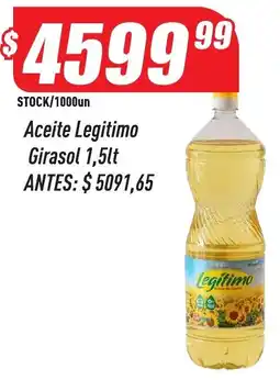 | Legitimo girasol aceite 1,5 L | Supermercados Comodin | $ 5.091,65 | $ 4.599,99 | $ 491,66 Descuento | 18 febrero 2026 | 26 febrero 2026 | |
