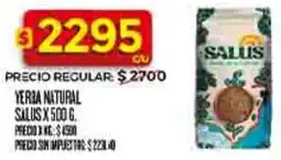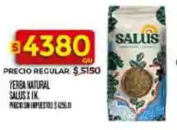1Supermercados DIA Salus yerba natural ofertaSalus yerba natural 1 kgSupermercados DIA$ 5.150,00$ 4.380,00$ 770,00 Descuento21 abril 202630 abril 2026 Ver oferta
