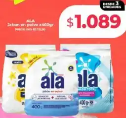 Durante estos días hay varias promociones activas para Ala jabón, tanto en Supermayorista Vital como en otras cadenas importantes. Encontrás descuentos como 1+1 gratis, hasta 25% DTO o precios especiales en productos como Ala jabon en polvo, Ala jabon en pan ecolavado y Ala jabón líquido para diluir. Usá los filtros para elegir por tipo de presentación, contenido o tu comercio preferido.