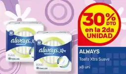 Diarco Always toallas femeninas xtra triple protec noche suave ofertaAlways toallas femeninas xtra triple protec noche suave 8 uDiarco$ 2.199,0005 enero 202609 enero 2026
