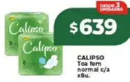 Durante estos días hay varias promociones activas para Calipso normal, tanto en Supermayorista Vital como en otras cadenas importantes. Encontrás descuentos como 1+1 gratis, hasta 25% DTO o precios especiales en productos como CALIPSO Toa fem normal c/a, Calipso protectores diarios normal y Calipso protectores diarios normal. Usá los filtros para elegir por tipo de presentación, contenido o tu comercio preferido.