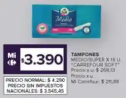 Durante estos días hay varias promociones activas para CARREFOUR SOFT, tanto en Carrefour como en otras cadenas importantes. Encontrás descuentos como 1+1 gratis, hasta 25% DTO o precios especiales en productos como Carrefour soft tampones medio super, Carrefour soft maquina afeitar 2 filos y Carrefour soft protector solar +45 fps pomo. Usá los filtros para elegir por tipo de presentación, contenido o tu comercio preferido.