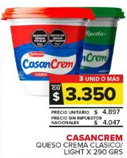 Beltrán Supermercados Casancrem queso crema clásico / light/ balance ofertaCasancrem queso crema clásico / light/ balance 290 gBeltrán Supermercados$ 3.400,0006 enero 202627 enero 2026