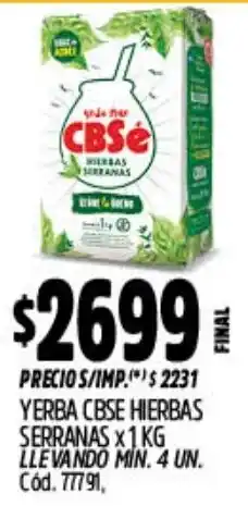 Supermercados Yaguar Cbse yerba hierbas serranas oferta