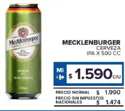 | 1 | Mecklenburger cerveza ipa 500 cc | Carrefour Maxi | $ 1.590,00 | 22 diciembre 2025 | 30 diciembre 2025 | Ver oferta | |||