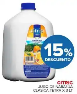 Durante estos días hay varias promociones activas para Citric, tanto en Carrefour Maxi como en otras cadenas importantes. Encontrás descuentos como 1+1 gratis, hasta 25% DTO o precios especiales en productos como Citric jugo de naranja clasica tetra, Citric jugo naranja tetrabrik y Citric jugo naranja brk.. Usá los filtros para elegir por tipo de presentación, contenido o tu comercio preferido.