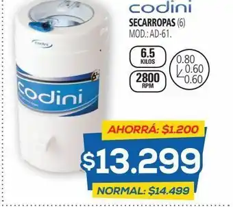 ![]() | Secadoras codini | Casa del Audio | $ 13.299,00 | 01 marzo 2022 | 31 marzo 2022 |