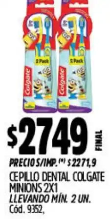 | CEPILLO DENTAL COLGATE MINIONS 2x1 | Supermercados Yaguar | $ 2.309,00 | 28 abril 2025 | 04 mayo 2025 | |||