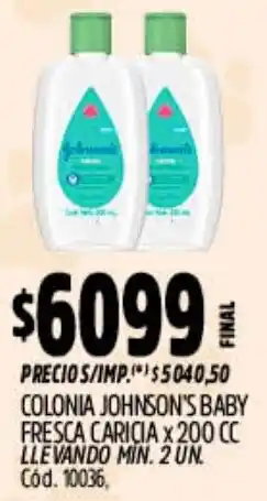 Diarco Johnson's colonia ofertaJohnson's colonia 200 ml.Diarco$ 5.999,0026 enero 202630 enero 2026