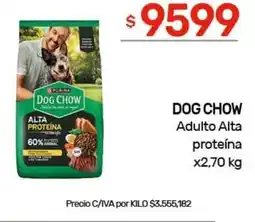 Con casi un siglo en la industria de alimentos de calidad para perros, Dog Chow es comida de tradición, y una marca representante de una de las más importantes del mundo de comida para mascotas: Purina. El catálogo Dog Chow incluye alimentos secos y húmedos nutritivos y con distintas fórmulas dependiendo del perrito en cuestión, además de snacks saludables. Su oferta de sabores y formulaciones incluye: adultos minis y pequeños con salmón, adultos minis y pequeños con pollo, adultos todos los tamaños con pollo, cachorros todos los tamaños con pollo, adultos control de peso, longevidad adultos de más de 7 años, cachorros medianos y grandes y cachorros minis y pequeños. Encontrá sus productos online en los folletos de descuento de supermercados y tiendas de mascotas y aprovechá ofertas y promociones para comprar los productos Dog Chow a precios bajos.