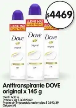 1Supermercados Buenos Días Dove antitranspirante original ofertaDove antitranspirante original 145 gSupermercados Buenos Días$ 4.469,0026 diciembre 202531 diciembre 2025 Ver oferta