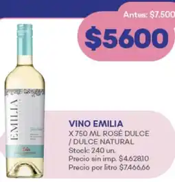 Supermercados Tadicor Emilia vino rosé dulce / dulce natural oferta