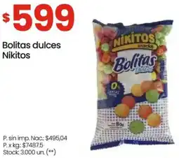 1Changomas Nikitos bolitas dulces ofertaNikitos bolitas dulcesChangomas$ 599,0014 enero 202621 enero 2026 Ver oferta