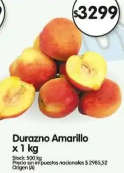 Supermercados Buenos Días Durazno amarillo ofertaDurazno amarillo 1 kg Supermercados Buenos Días$ 3.299,0018 diciembre 202524 diciembre 2025