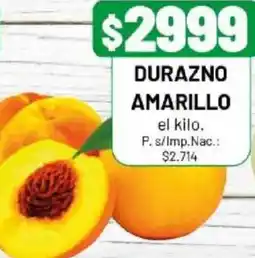 Supermercados Buenos Días Durazno amarillo o durazno pelón ofertaDurazno amarillo o durazno pelón 1 kg Supermercados Buenos Días$ 3.999,0008 enero 202614 enero 2026