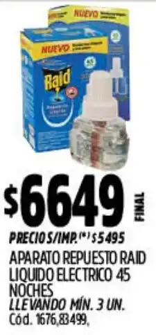 | Raid insecticida aparato liquido electrico 32,9 ml | Maxiconsumo | $ 9.199,90 | 24 noviembre 2025 | 07 diciembre 2025 | |||