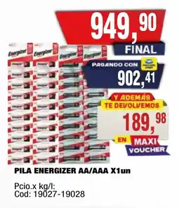 Maxiconsumo Energizer AA/AAA pilas ofertaEnergizer AA/AAA pilas 4 u.Maxiconsumo$ 4.499,9006 abril 202612 abril 2026