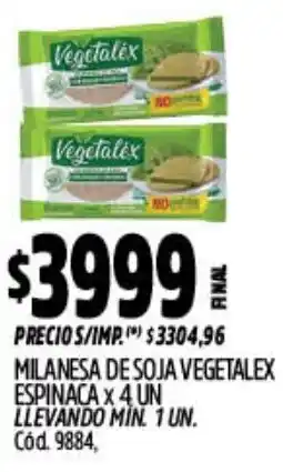 Supermercados Yaguar Vegetalex milanesa de soja espinaca oferta