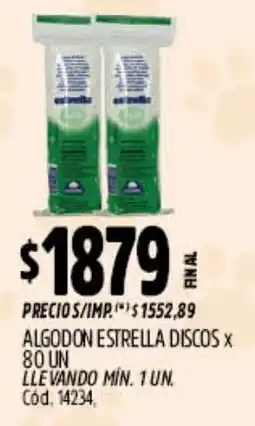 | Estrella algodon discos 80 u | Supermercados Yaguar | $ 1.879,00 | 13 abril 2026 | 19 abril 2026 | |||