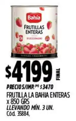 | La bahia frutilla enteras 850 g | Supermercados Yaguar | $ 3.999,00 | 19 enero 2026 | 25 enero 2026 | |||