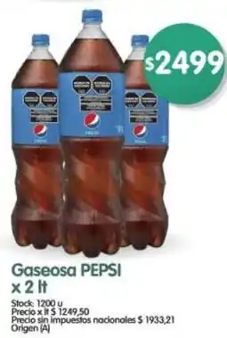 1Supermercados Buenos Días Pepsi gaseosa ofertaPepsi gaseosa 2 L Supermercados Buenos Días$ 2.499,0002 enero 202607 enero 2026 Ver oferta