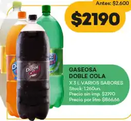 1Supermercados Tadicor Doble cola gaseosa ofertaDoble cola gaseosa 3 LSupermercados Tadicor$ 2.600,00$ 2.190,00$ 410,00 Descuento29 enero 202603 febrero 2026 Ver oferta
