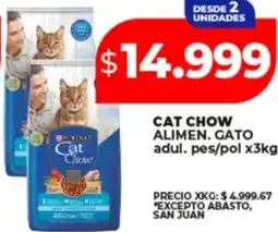 ![]() | Cat chow alimen. gato adul. pes/pol 3 kg | Supermayorista Vital | $ 14.999,00 | 30 septiembre 2025 | 05 octubre 2025 |