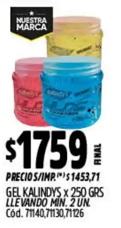 1Supermercados Yaguar Kalindys gel ofertaKalindys gel 250 gSupermercados Yaguar$ 1.759,0013 abril 202619 abril 2026 Ver oferta
