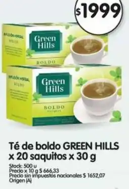 Supermercados Buenos Días Green hills té clásico ofertaGreen hills té clásico 50 gSupermercados Buenos Días$ 1.119,0011 diciembre 202517 diciembre 2025