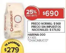 | Chacabuco harina integral fina | Carrefour | $ 1.459,00 | $ 1.090,00 | $ 369,00 Descuento | 24 febrero 2026 | 02 marzo 2026 | |