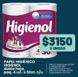 Higienol papel higiénico doble hoja, paq.