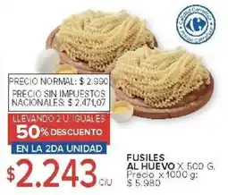 2Carrefour Fusiles al huevo ofertaFusiles al huevo 500 g.Carrefour$ 2.990,00$ 2.243,00$ 747,00 Descuento27 enero 202602 febrero 2026 Ver oferta