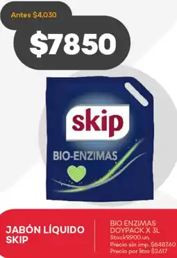 Jabón liquido skip estará incluido en múltiples promociones a lo largo de la semana. Existen diferencias de precio entre distintos comercios, por lo tanto es útil comparar opciones. Productos similares también pueden encontrarse con precios especiales, lo que facilita encontrar la mejor alternativa antes de comprar.