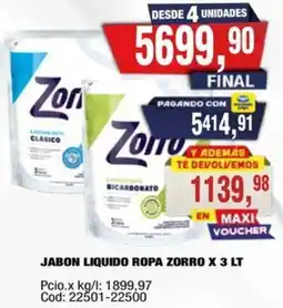 | 2 | Zorro jabon liquido ropa 3 L | Maxiconsumo | $ 5.699,90 | 16 febrero 2026 | 22 febrero 2026 | Ver oferta | |||