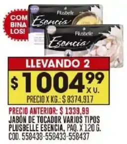 | Plusbelle esencia jabón de tocador varios tipos paq. 120 g | Coto | $ 1.004,99 | 02 febrero 2026 | 09 febrero 2026 | |||