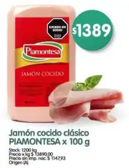 Supermercados Buenos Días Piamontesa jamón cocido clásico ofertaPiamontesa jamón cocido clásico 100 gSupermercados Buenos Días$ 1.349,0029 enero 202604 febrero 2026