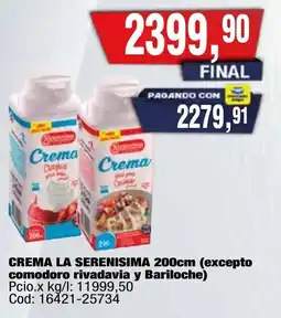 | La Serenisima crema | Maxiconsumo | $ 2.399,90 | 23 marzo 2026 | 29 marzo 2026 | |||