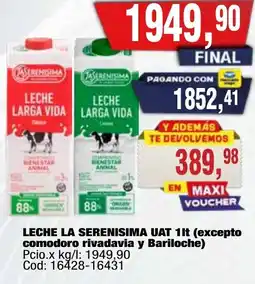 | LECHE LA SERENISIMA UAT 1lt | Maxiconsumo | $ 1.749,90 | 28 abril 2025 | 04 mayo 2025 | |||