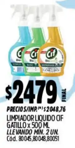 | 2 | Cif limpiador liquido gatillo 500 ml | Supermercados Yaguar | $ 2.479,00 | 22 diciembre 2025 | 28 diciembre 2025 | Ver oferta | |||