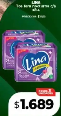 | Lina toalla femenina normal c/a 8 u | Supermayorista Vital | $ 949,00 | 03 noviembre 2025 | 09 noviembre 2025 | |||