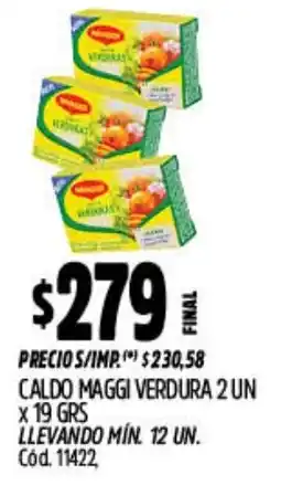 | Maggi caldo verdura 19 g | Supermercados Yaguar | $ 279,00 | 13 abril 2026 | 19 abril 2026 | |||