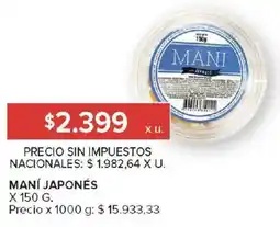 1Carrefour Maní japonés ofertaManí japonés 150 gCarrefour$ 2.399,0015 abril 202620 abril 2026 Ver oferta