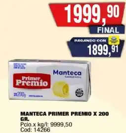 Makro Primer premio manteca ofertaPrimer premio manteca 200 g Makro$ 2.763,29$ 1.949,99$ 813,30 Descuento26 diciembre 202531 diciembre 2025