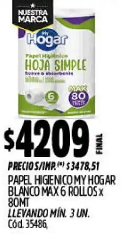 3Supermercados Yaguar My hogar papel higienico blanco max ofertaMy hogar papel higienico blanco maxSupermercados Yaguar$ 419,0022 diciembre 202528 diciembre 2025 Ver oferta