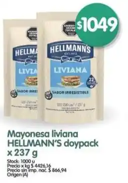 2Supermercados Buenos Días Hellmann's mayonesa liviana doypack ofertaHellmann's mayonesa liviana doypack 237 gSupermercados Buenos Días$ 1.049,0008 enero 202614 enero 2026 Ver oferta