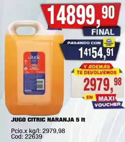 1Maxiconsumo Citric jugo naranja ofertaCitric jugo naranja 5 LMaxiconsumo$ 14.899,9014 abril 202619 abril 2026 Ver oferta