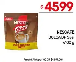 Super MAMI Nescafé café dolca doypack tradicional/suave ofertaNescafé café dolca doypack tradicional/suaveSuper MAMI$ 7.299,00$ 5.999,00$ 1.300,00 Descuento21 enero 202627 enero 2026