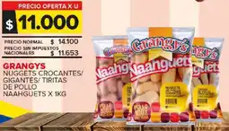 Carrefour Maxi Grangys nuggets crocantes/ gigantes/tiritas de pollo naahguets ofertaGrangys nuggets crocantes/ gigantes/tiritas de pollo naahguets 1 kgCarrefour Maxi-20%05 enero 202611 enero 2026