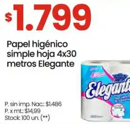 | Papel higiénico elegante simple hoja x 6 x 30 | Changomas | $ 149,00 | 27 diciembre 2021 | 06 enero 2022 | |||
