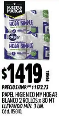 | My hogar papel higienico blanco max | Supermercados Yaguar | $ 419,00 | 22 diciembre 2025 | 28 diciembre 2025 | |||